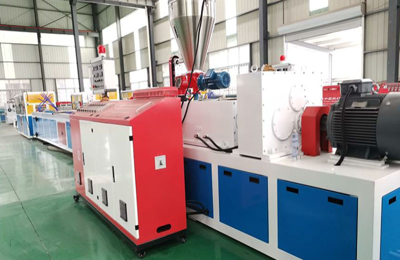 PVC木塑共擠(發(fā)泡)異型材生產(chǎn)線 主機采用變頻調(diào)速,螺桿芯部調(diào)溫的錐形雙螺桿擠出機。擠出量可提高 50%,節(jié)電 20%-30%。硬齒面減速機可連續(xù)長時間運轉(zhuǎn)無故障。牽引切割融為一體,運轉(zhuǎn)平穩(wěn),使用壽命長。在此設(shè)備的基礎(chǔ)上,增加一套鋼襯輸送裝置,更換仿木發(fā)泡型材專用模具也可生產(chǎn)鋼塑型材。該制品與普通門窗相比,具有明顯的高強度-高保溫性-高氣密性等特點且易組裝,不需專用的塑焊-清角設(shè)備,可在施工現(xiàn)場操作,為推廣普及帶來極大的便利。優(yōu)化的螺桿設(shè)計使用使剪切小,不易剪斷木質(zhì)纖維,能使物料在機內(nèi)停留時間均勻。木粉及植物纖維添加量高(最高可達 50-75%);設(shè)備適應(yīng)能力強.